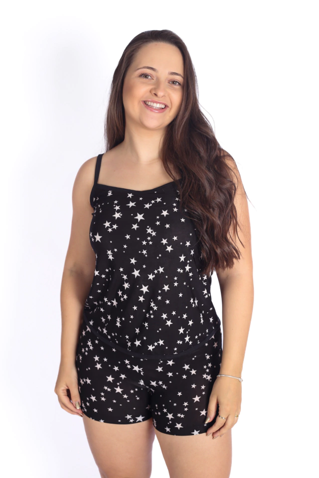 Pijama Curto Feminino Verão Alcinha Liganete Estrela